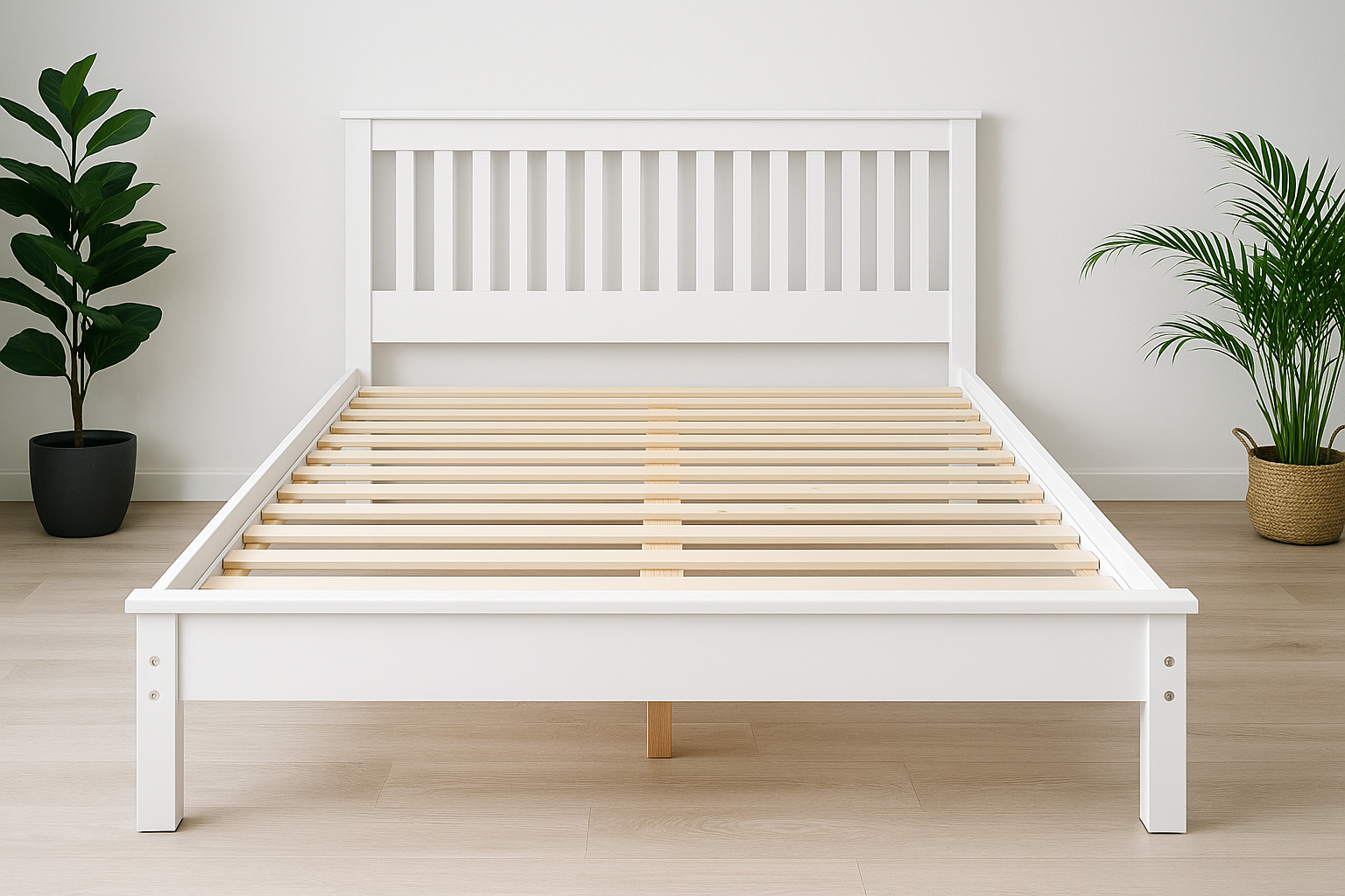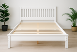 A pure white rubber wood bed frame is a timeless and elegant piece of bedroom furniture. Crafted from the wood of the rubber tree, it combines a clean and pristine white finish with the natural beauty and strength of rubber wood.