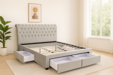 Some of our king bed frames include built-in storage drawers or under-bed space; ideal for keeping your room tidy without sacrificing style. Upholstered models provide added softness and visual appeal, while timber and metal frames offer a timeless touch to suit both modern and traditional interiors.