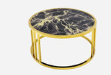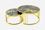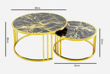 The Hana featuring a stunning gold metal finish, this set of nesting tables beautifully contrasts with the sleek glass tops, offering a sophisticated touch to any space. The varying table heights add depth and dimension to the room. Designed for both style and functionality, the nesting feature provides flexibility, allowing you to easily rearrange or tuck the tables together to save space.