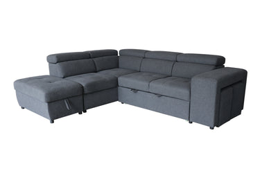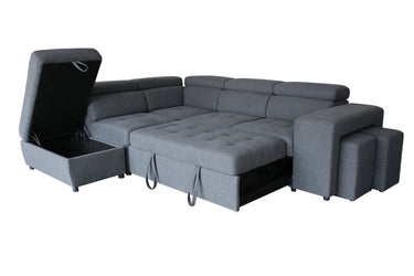 Larissa 4 Seater Fabric Pull Out Sofa bed with Storage Ottoman + 2 Stools