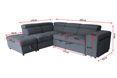 - Corner Lounge: 262W * 164D * 81/101H cm