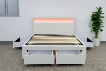 Many of our bed frames have practical features, including under-bed clearance or built-in storage, which are perfect for keeping your space tidy and maintaining clean lines. Whatever your preference, you’ll find a queen bed frame that complements your bedroom layout and theme.