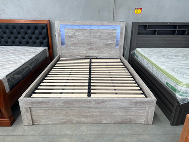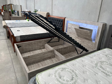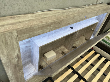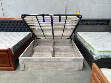 Perfect for space-conscious rooms, the Gaslift Bed – offers generous storage in a seamless design. A timeless washed oak finish complements smooth MDF and geometric silhouette. Keep clutter at bay thanks to the bedhead shelf and front gas-lift mechanism for additional underbed storage.
